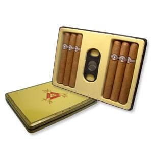 Six Montecristo Double Coronas (6×50) in a smart gift pack with a Montecristo Signature cutter. The Flip-Top gift-pack opens up to reveal the cigars and the handsome Double Guillotine cutter that always stays sharp.